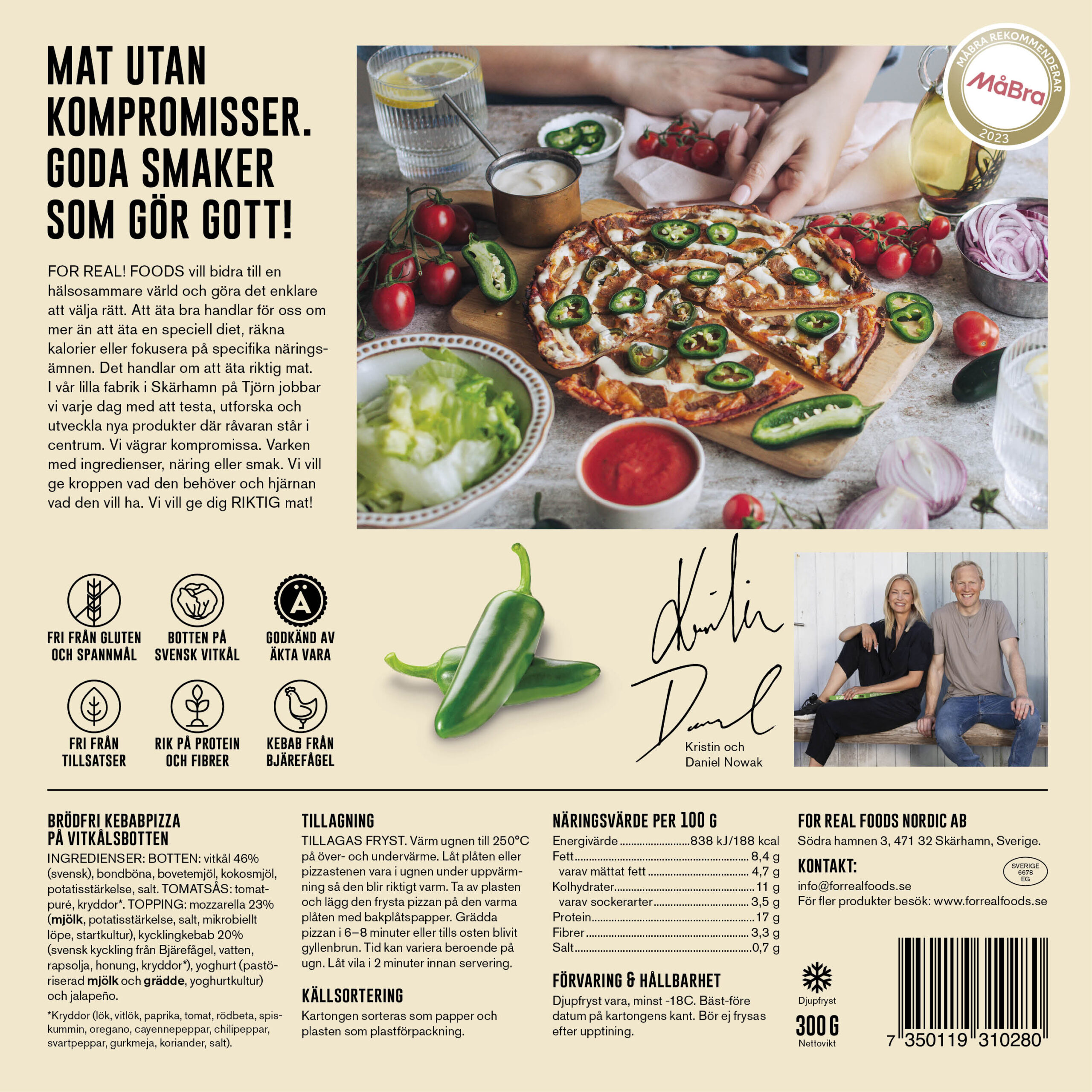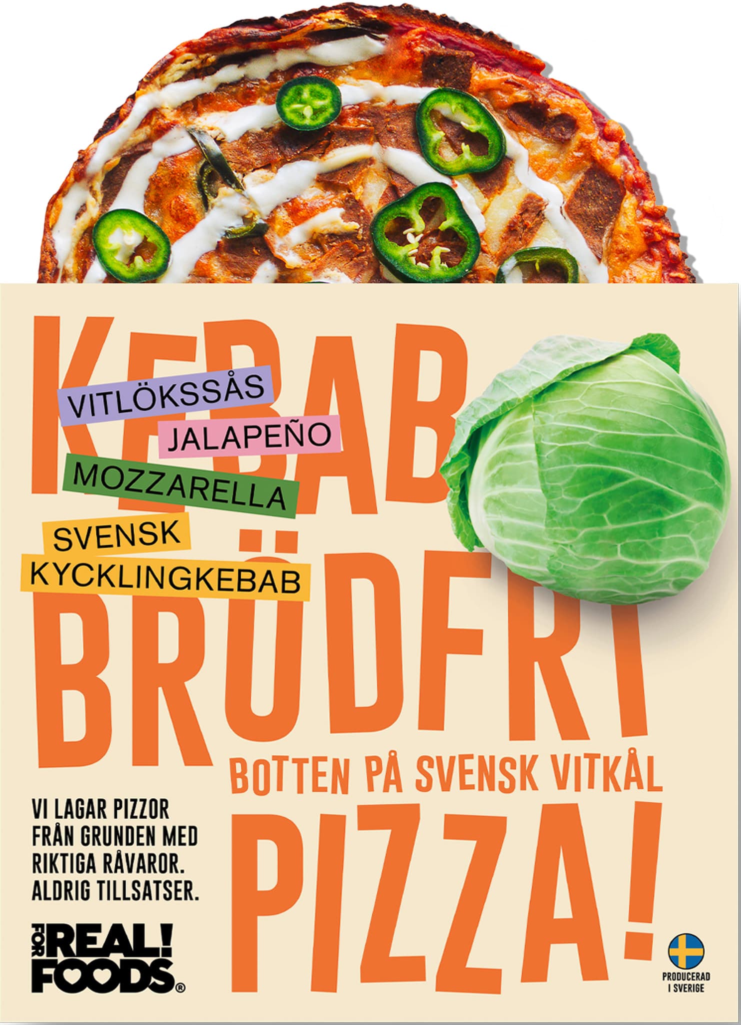 Brödfri pizza med botten av svensk vitkål helt utan spannmål och med 100% naturliga råvaror. Njut av en smakrik produkt som lämnar dig med en skön och fräsch mättnadskänsla. Perfekt för dig som gillar Low Carb, Keto, Glutenfritt eller för dig som bara vill äta näringsrik och riktig mat utan tillsatser. Producerad i Skärhamn på Tjörn.